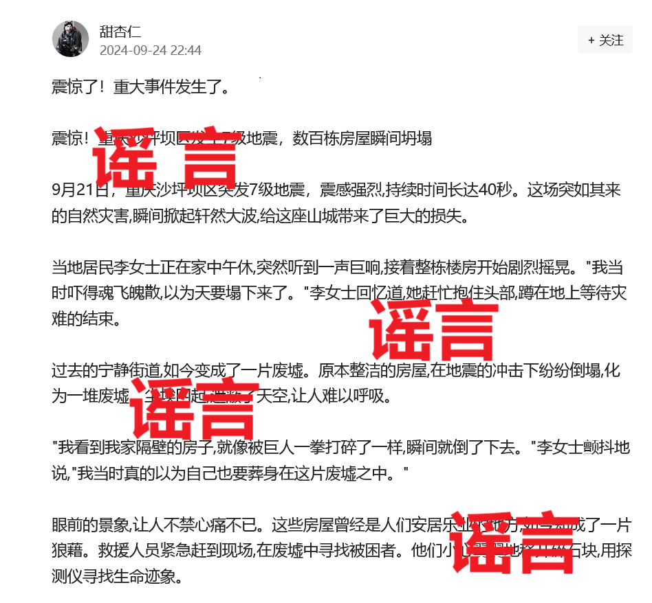 网传“重庆市沙坪坝区突发7级地震”?系谣言!