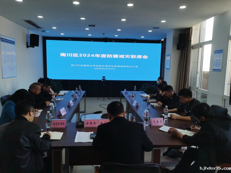 近日,南川区地指办组织区应急管理局、区经济信息委、区住房城乡建委、区交通局、区规划自然资源局等13个部门(单位)召开2024年度防震减灾工作联席会。会议通报了2024 年全市防震减灾工作会议精神,总结了2023年度工作,安排部署2024年度重点工作。
